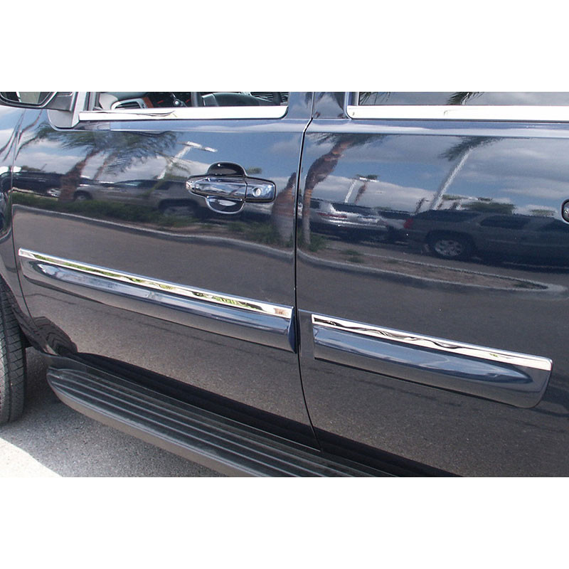 This Three-Quarter Inch 4-piece "Stainless Steel" Chrome Top Side Molding Trim is made to fit your 2007-2009 GMC Yukon XL. Each Door Molding Piece is constructed with the highest grade 304 Stainless Steel. Your new door molding trim will have smooth beveled edges and will arrive polished to a brilliant mirror shine. PERFECTLY Fits over the top of your existing 2007-2009 Yukon XL's side molding. It literally installs in under 15 minutes of your time (With No Tools)!! Once installed, it is VERY secure.