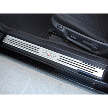 Designed to fit your Mustang perfectly, this slotted Door Sill Trim Kit is constructed from high-quality 304 stainless steel with a brushed and polished finish for a custom look and features a carbon fiber inlay with a "5.0" inlay