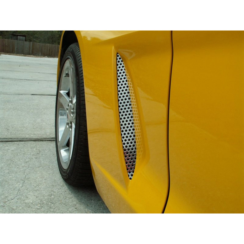 Designed to fit your Corvette C6 perfectly, these black Side Vent Grilles are constructed from high-quality 304 stainless steel and perforated for a custom look