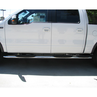 5 Inch Oval One Side Bent Polished Stainless Steel With Welded End Caps Rocker Panel Mount With Step Pads With Bed Step