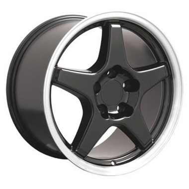 This single aftermarket 17" Black Corvette ZR1 style rim includes a center cap - Factory original center cap will interchange