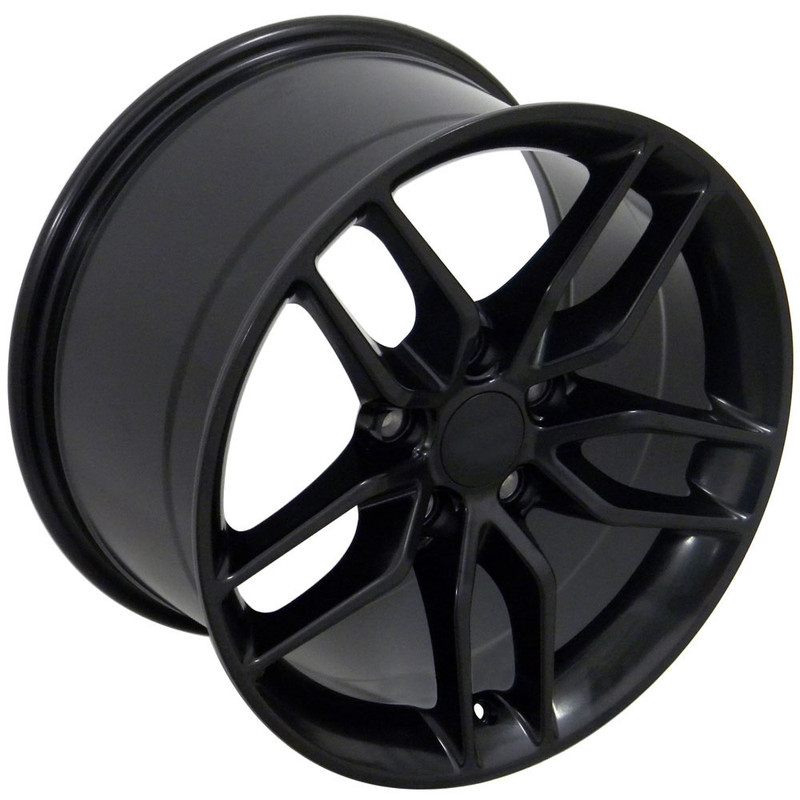 This single aftermarket 17" Satin Black Corvette C7 Stingray style rim includes a center cap - Factory original center cap will interchange