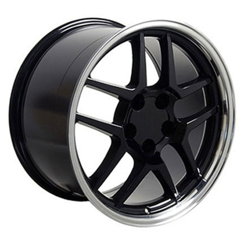 This single aftermarket 18" Black Corvette C5 Z06 style rim includes a center cap - Factory original center cap will interchange