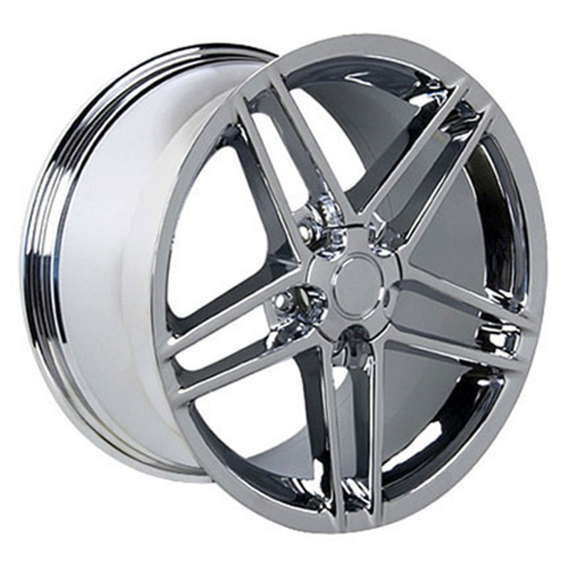 This single aftermarket 18" Chrome Corvette C6 Z06 style rim includes a center cap - Factory original center cap will interchange