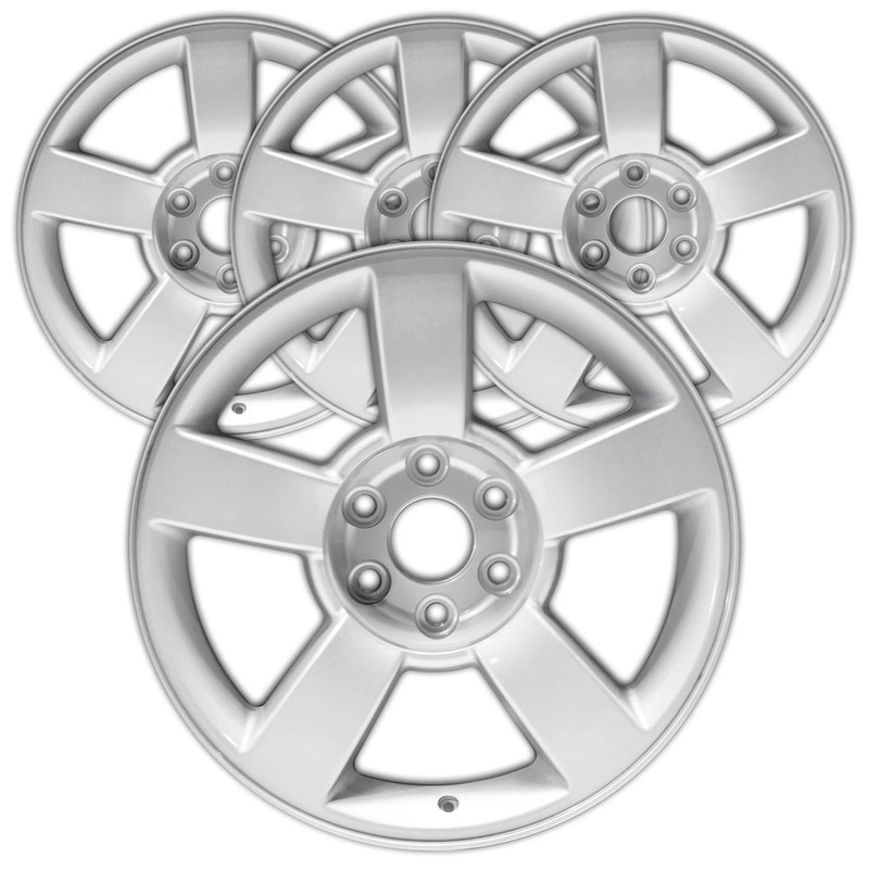 This full set of four 20-inch 5-spoke wheels feature an exact reproduction of the factory original finish and are meticulously manufactured for your Chevrolet Silverado 1500.