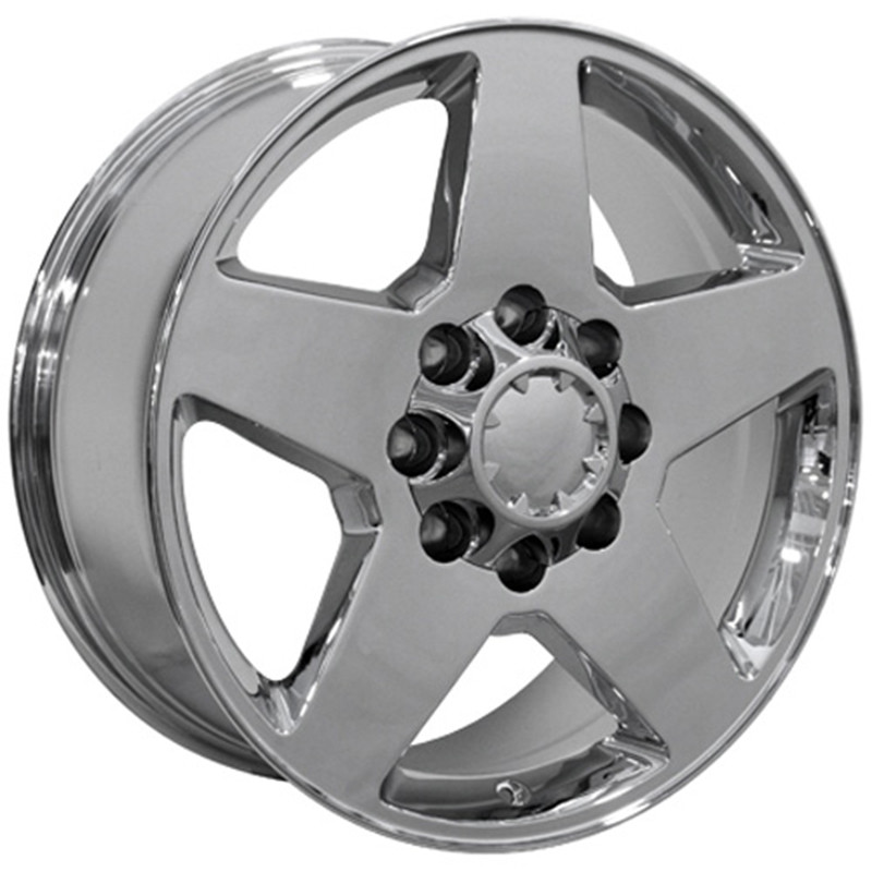 This single aftermarket 20" PVD Chrome Silverado style rim includes a center cap - Factory original center cap will interchange