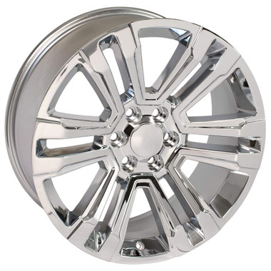 This single aftermarket 22" Chrome Denali style rim includes a center cap - Factory original center cap will interchange