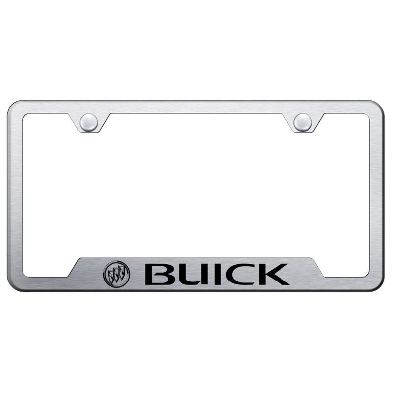 Made from high quality materials and Officially Licensed by Buick, this item features 'Buick' laser etched on a Brushed Stainless Steel Cut-Out License Plate Frame.