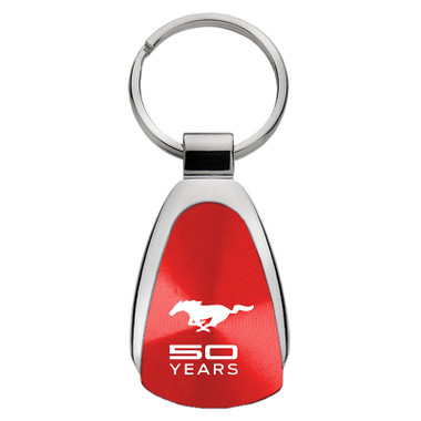 Made from high quality materials and Officially Licensed by Mustang, this item features 'Mustang' 50 Years emblazoned on a Red Teardrop Keychain.