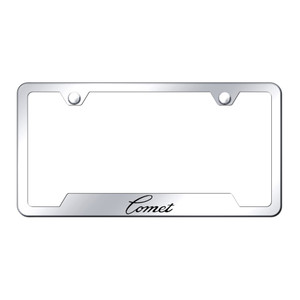 Made from high quality materials and Officially Licensed by Ford, this plate frame features the laser etched script Comet name on a chrome stainless steel cutout bottom license plate frame.