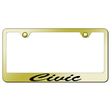 Made from high quality materials and Officially Licensed by Honda, this item features 'Civic' Script laser etched on a Gold License Plate Frame.