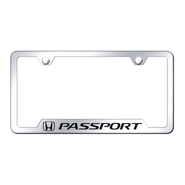 Made from high quality materials and Officially Licensed by Honda, this plate frame features the laser etched Passport name and logo on a chrome stainless steel cutout bottom license plate frame.