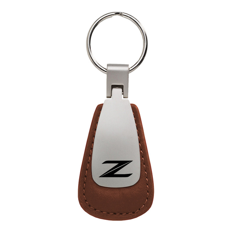 Made from high quality materials and Officially Licensed by Nissan, this keychain features the Z logo on a brown leather teardrop keychain.
