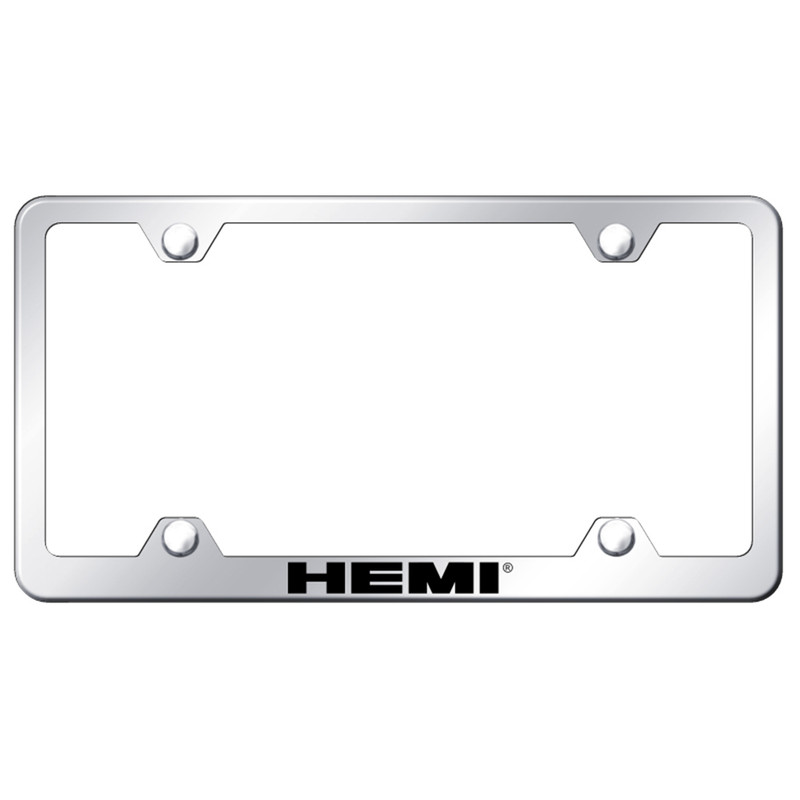 Made from high quality materials and Officially Licensed by , this item features 'Hemi' laser etched on a Stainless Steel Wide Body License Plate Frame.