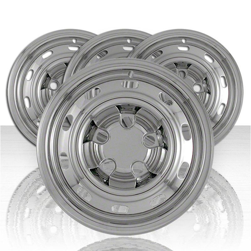 This set of four 17" premium wheel skins are perfectly designed to fit your 2004-2012 Dodge RAM 1500 OEM wheels. Constructed from high-quality, automotive grade ABS and triple chrome-plated for a mirror shine that matches your factory chrome perfectly! This set of style wheel skins fit your factory wheels like a glove! Featuring the quickest, easiest, and most advanced snap-on style installation that will fit firmly and exactly over your existing wheels giving it an undetectable factory upgraded look!