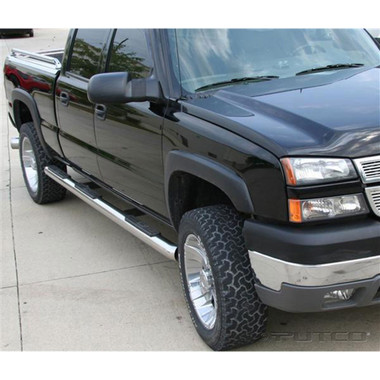 These polished Stainless Steel Wheel-to-Wheel Step Bars are precision engineered to fit your 2001-2006 GMC Sierra 1500/1500HD Crew Cab Short Bed.